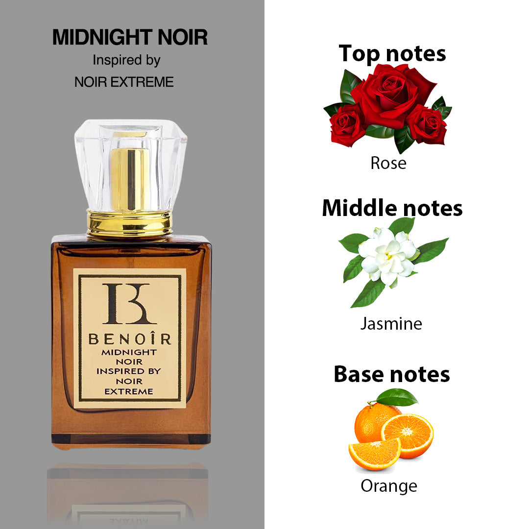 As you embark on your journey with Midnight Noir, prepare to be transported to distant lands and exotic locales. Each whiff evokes memories of sun-drenched fields, blooming gardens, and romantic evenings under the stars. It's a scent that whispers tales of passion and adventure, inviting you to write your own story of love and desire.